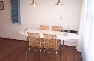 Woonkamer met open keuken, 2 slaapkamers. Badkamer met bad, douche en wastafel. Separaat toilet.