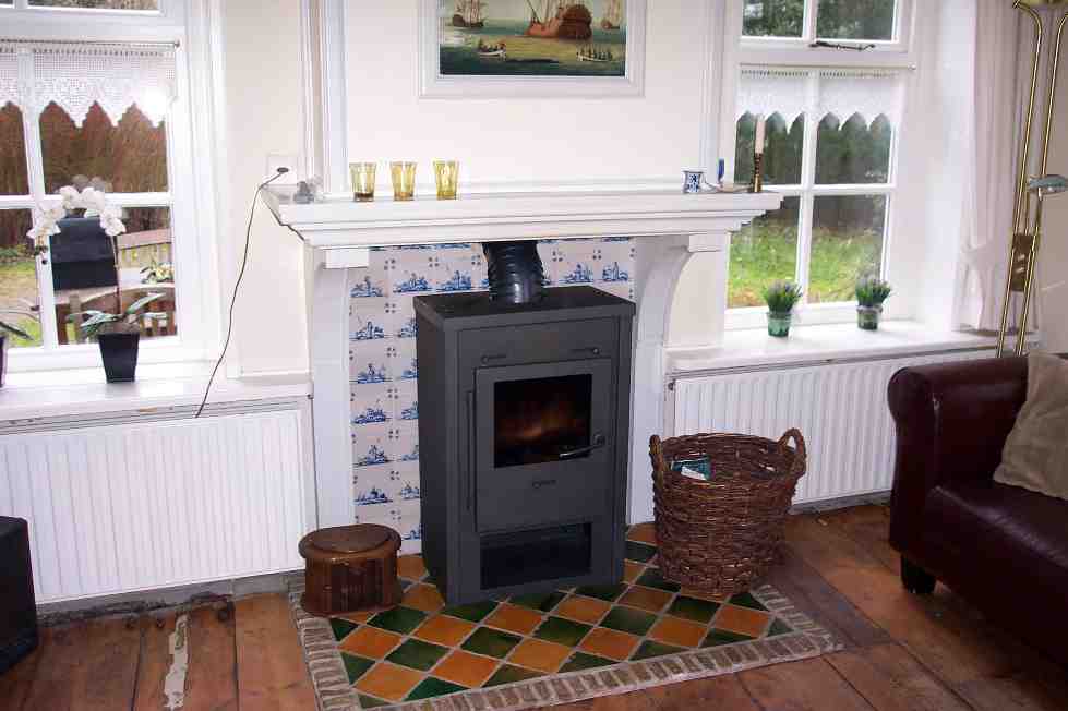 Zeer unieke entree. Woonkamer met sfeervolle houtkachel.