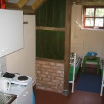 Het huisje bevalt wel een keukenblok en zitgedeelte.