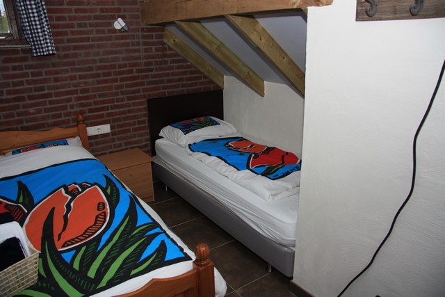 Trekkershuisje 2 is gebaseerd op trekkershuisje 1 echter heeft dit huisje twee éénpersoons bedden.