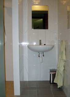 Toiletvoorzieningen, douches, met vloerverwarming.